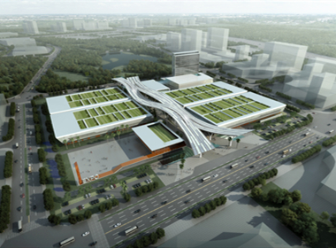 The project is 1045m long in North and south, 99.5m-110.5m wide in East and west, 80m wide above ground, with a total construction area of 220,000 square meters. The project includes membrane roof and six steel latticed shells "Sunshine Valley".Sunshine Valley structure system is a single-layer grid composed of triangular meshes. The steel structure of Sunshine Valley is conical in shape, like a loudspeaker facing the sky, and its section is a hyperboloid with variable curvature. The height of reticulated shell is 41m, the steel consumption is about 300 tons, the number of reticulated shell joints is about 10 600, and the area of special-shaped curtain wall is about 35,000 square meters.
