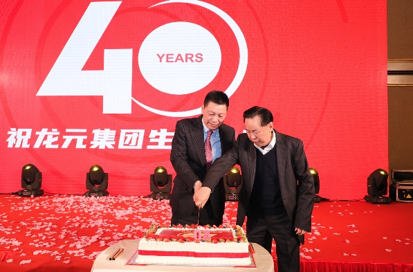 董事長賴振元和總裁賴朝暉在迎新晚會上一起上臺,為集團40周年慶生,共同許愿集團的美好未來。