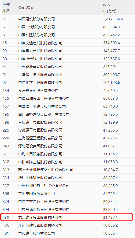 榜單顯示,今年共有28家基建、建筑企業上榜。2019年是中央經濟工作會議部署“新基建”后的元年,但因其在固定資產投資中的絕對占比較低,因此在實現經濟“穩增長”的過程中,“老基建”仍發揮著不可或缺的作用。
