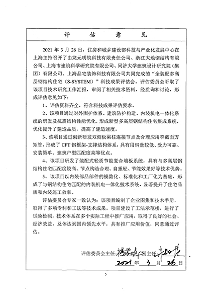同時,專家還提出了下一步研發(fā)指導意見,建議針對建筑平立面、鋼框架剪力墻、施工速度、成本菜單化梳理等方面深度剖析,過程中做好示范總結工作,通過項目實踐,進行技術驗證及持續(xù)優(yōu)化。評估委員會專家一致認為:龍元明筑S-SYSTEM體系總體達到國內領先水平,具有推廣應用價值,同意通過評估。