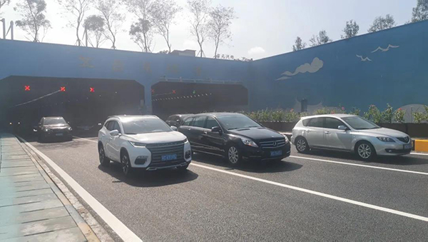今日上午8點58分,隨著紅色圍擋的撤除,城東至北峰快速通道往北峰方向的車輛在豐澤交警大隊鐵騎隊的引導下駛過五臺尾隧道右線。至此,由龍元建設集團投資建設運營的泉州城東至北峰快速通道及兩側片區棚戶區改造PPP項目最重要的控制性節點以及重難點工程——五臺尾隧道實現雙向試通車,標志著該通道主線雙向六個車道實現通行。