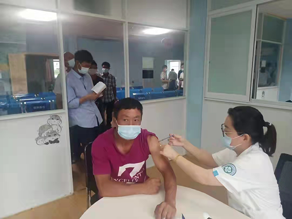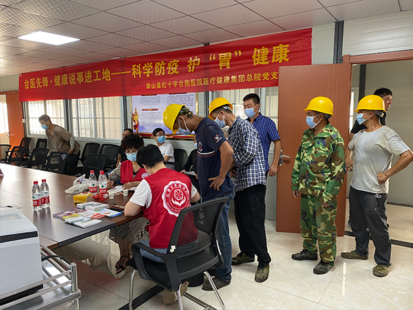 這是石浦客運中心工程PPP項目臨時黨支部再次與象山縣臺胞醫院醫健集團總院黨支部攜手,為項目一線員工健康提供保障。去年12月,臺胞醫院近10個科室的臨床專家們就走進項目部開展義診活動,為建筑工人們進行血壓、血糖、血型等檢查,并指導工人們進行了心肺復蘇演練。今年6月,項目臨時黨支部與臺胞醫院黨支部積極聯系溝通,專門組織了工人專場進行新冠疫苗接種,切切實實地為一線建設者做好服務。