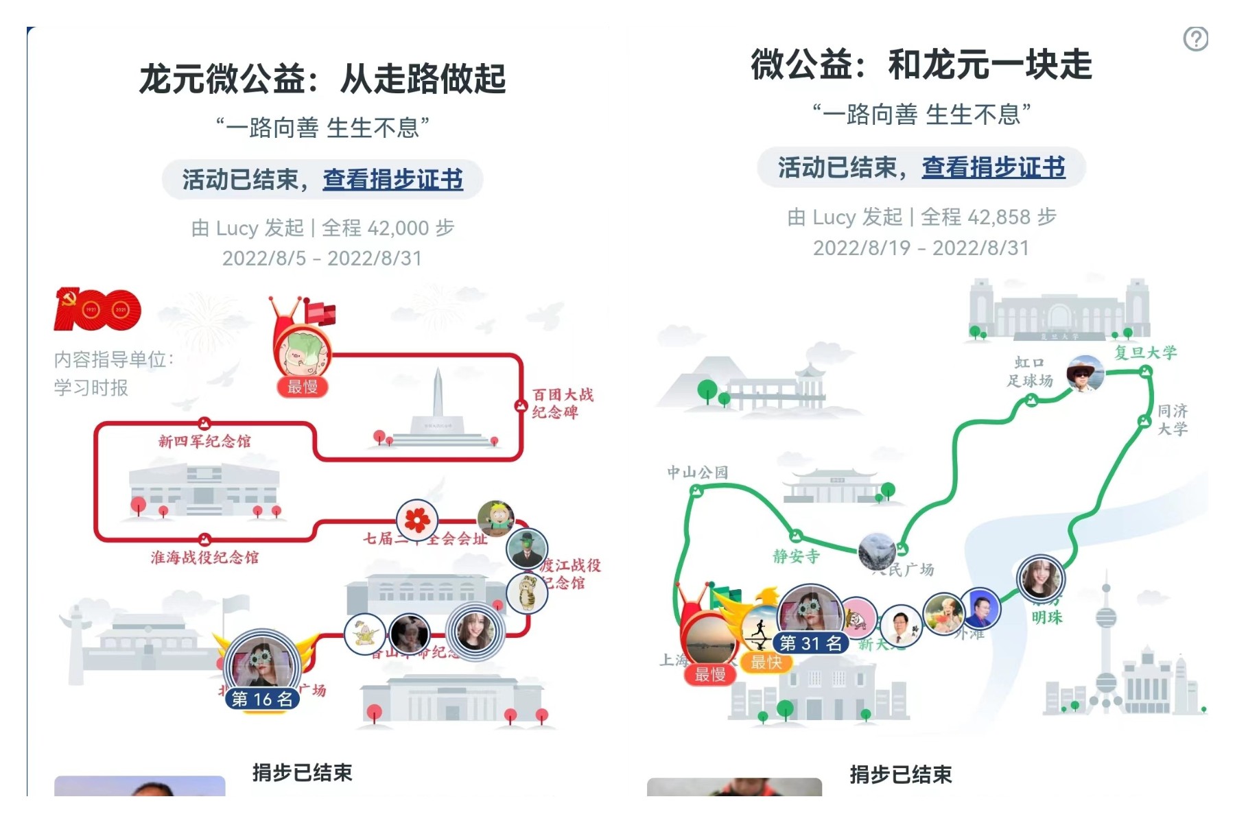 活動(dòng)發(fā)起后,龍?jiān)嗄隉崆楦邼q,除總部外,遠(yuǎn)在全國各地的龍?jiān)策h(yuǎn)程助力,不到一周就完成了30公里的行走任務(wù)。