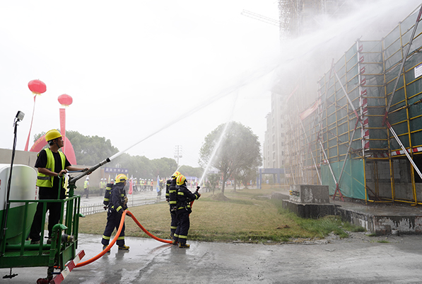 “請(qǐng)各演練隊(duì)伍迅速就位,演練馬上開始!”6月6日,由龍?jiān)瘓F(tuán)承建的衢州智慧新城百家坊社區(qū)項(xiàng)目(一期)工地上不時(shí)響起口哨聲,一場(chǎng)緊張激烈的“比武”正在進(jìn)行。